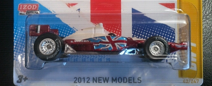 In memory of IndyCar racer, Dan Wheldon, Hot Wheels has released a special version of 2012 New Model #42. The original release was the 2011 IndyCar Oval Course Race Car which comes in both black and white versions. Now there is special edition named DW-1
